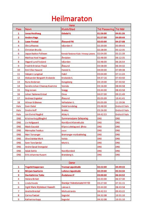 - Heilmaraton (to runder, totalt 42,2km og 2700 høgdemeter)