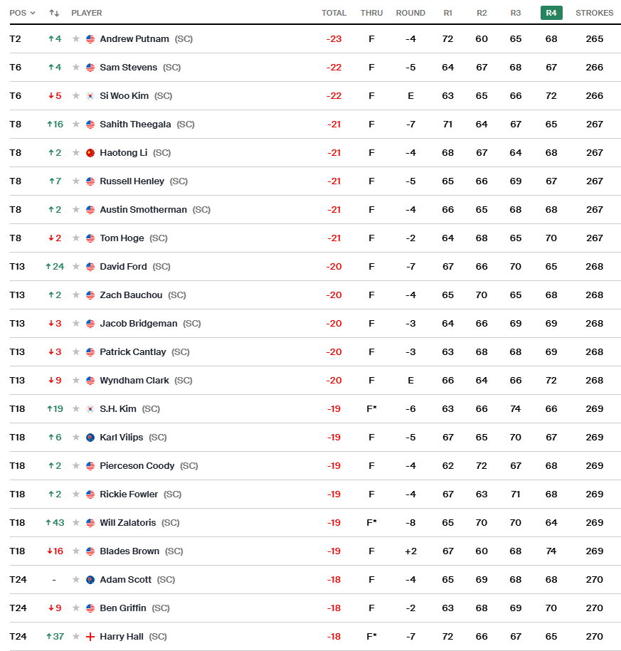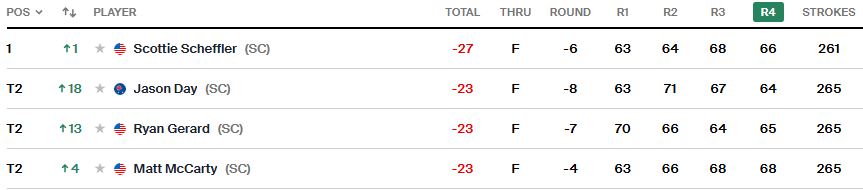 Resultater fra PGA touren og The American Express som spilles i California, USA fra 22. - 25. januar 2026.
