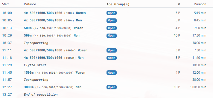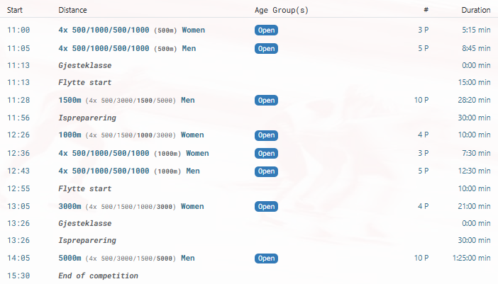 Løpere som ikke har oppnådd tidskrav for å delta i Norgescup, kan delta i Gjesteklasse løp med samme distanse oppsett – se egen påmelding.