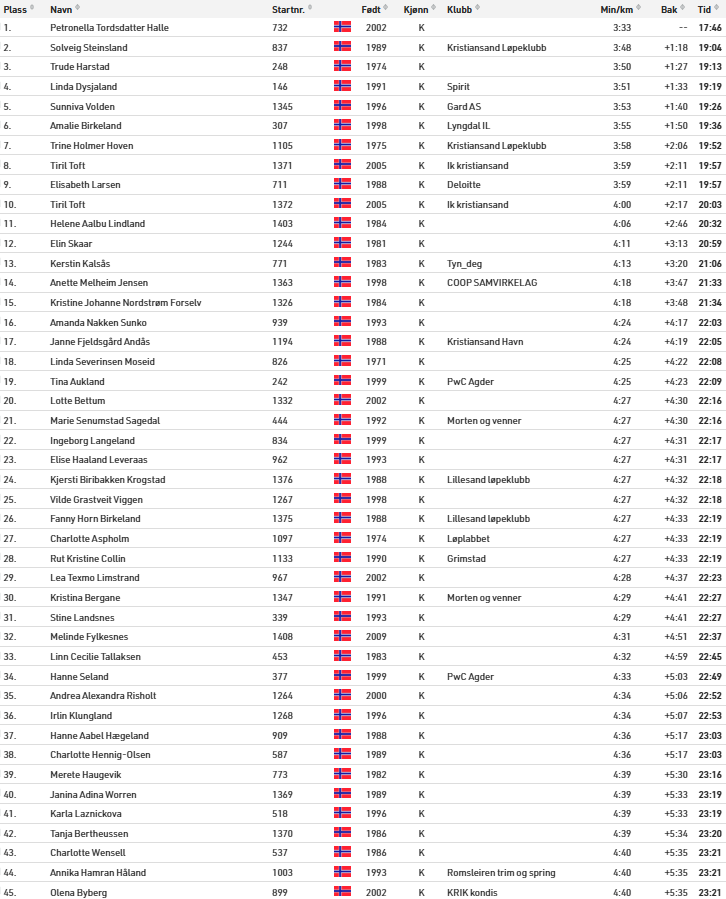 6 km kvinner, topp45