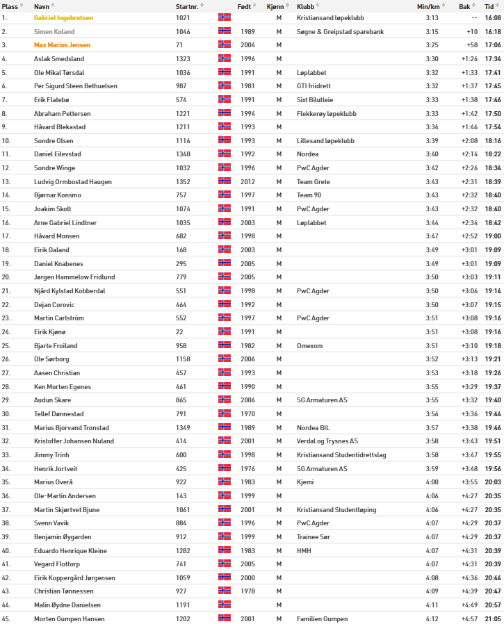 6 km menn, topp 45