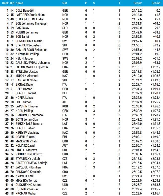 Resultater, startlister og annen informasjon sprint menn verdenscup Oberhof torsdag 4. januar 2024.