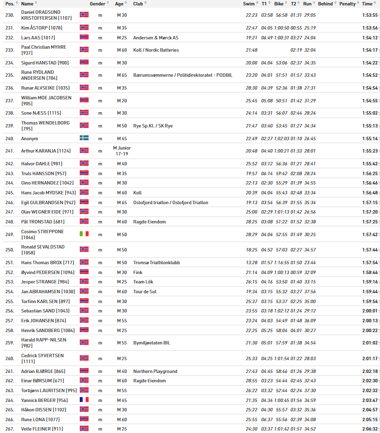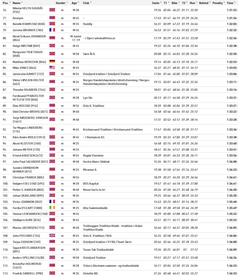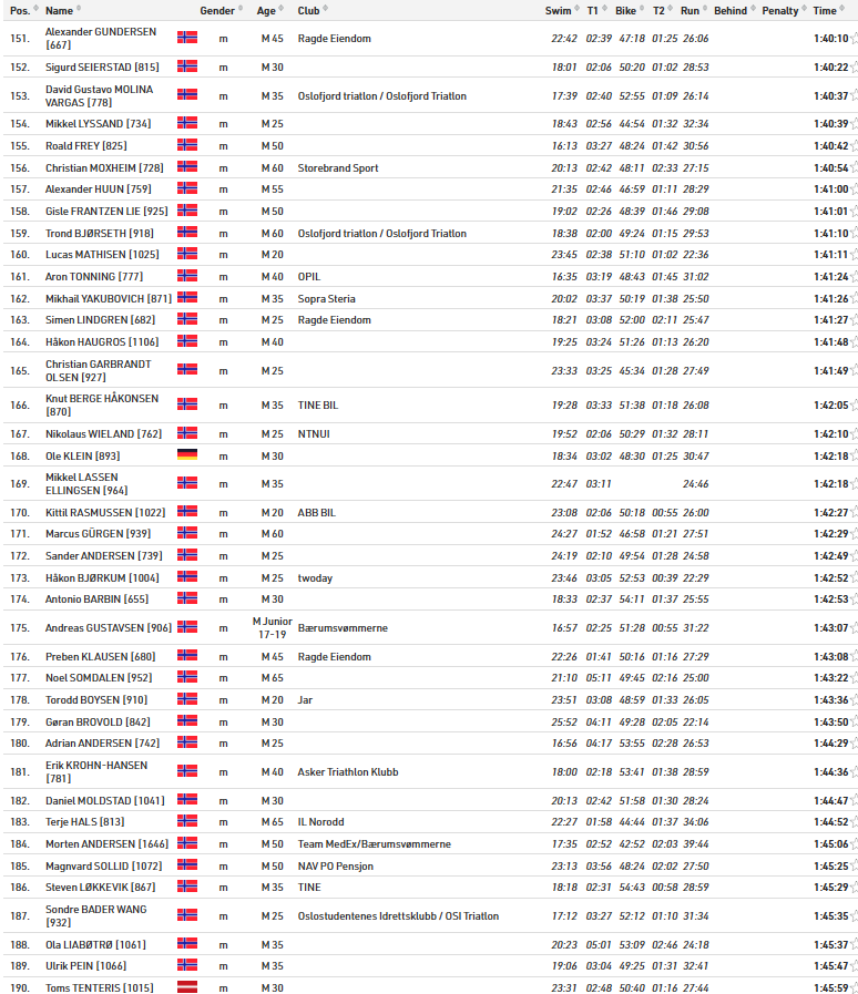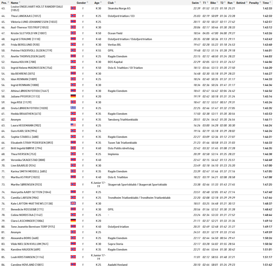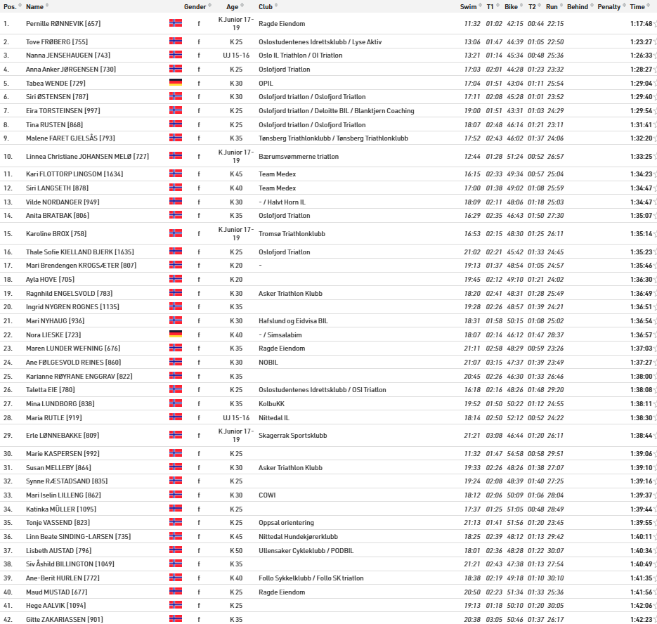 Alle resultater Oslo Triatlon 2025