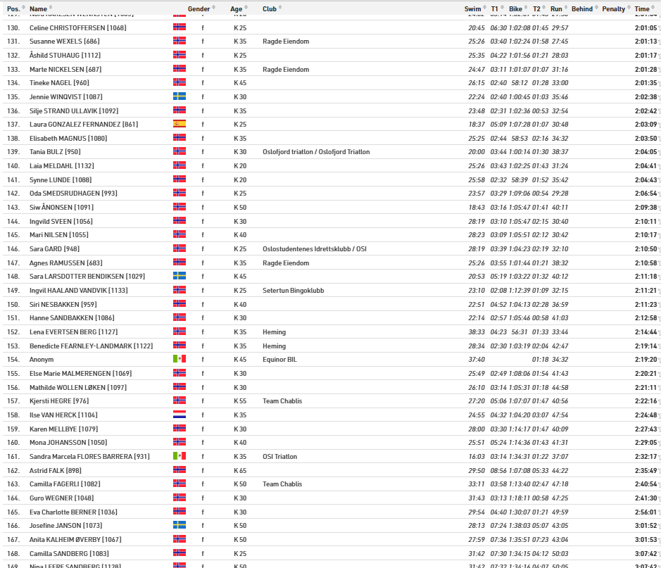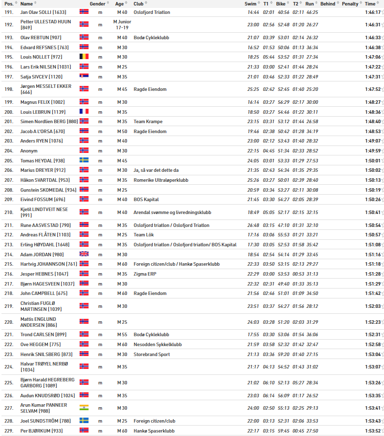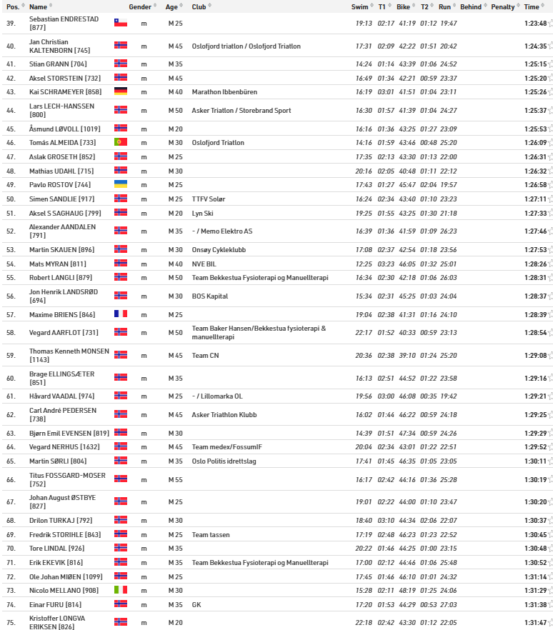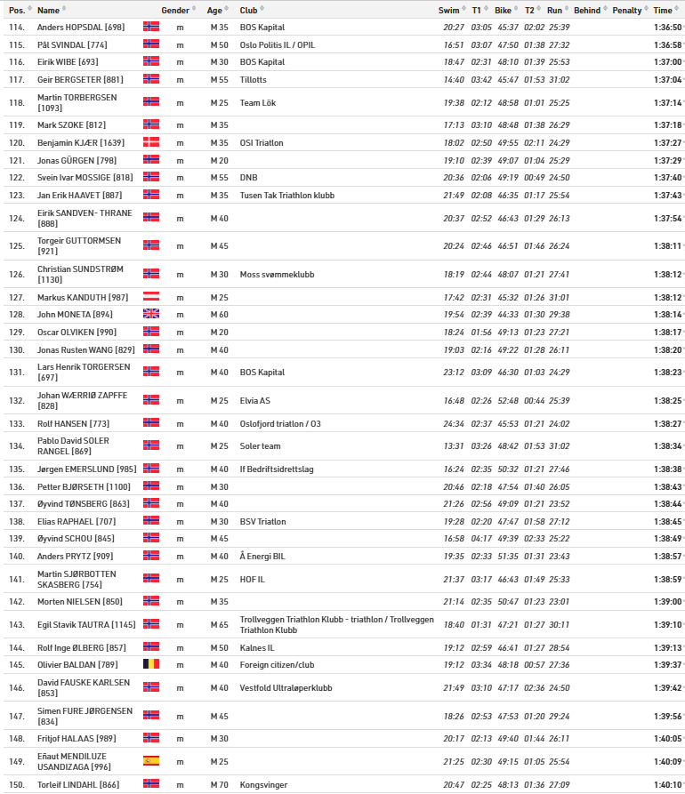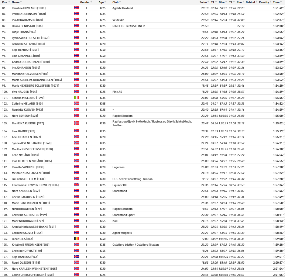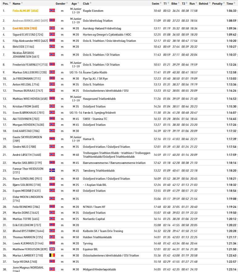 Alle resultater Oslo Triatlon 2025