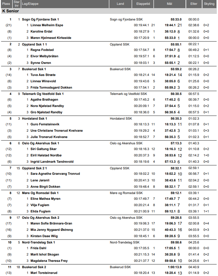 | 8 | Nord-Østerdal SSK 1 | Eline Grue – Ida Johanne Olderstuen – Emilie Schärer | Nord-Østerdal |