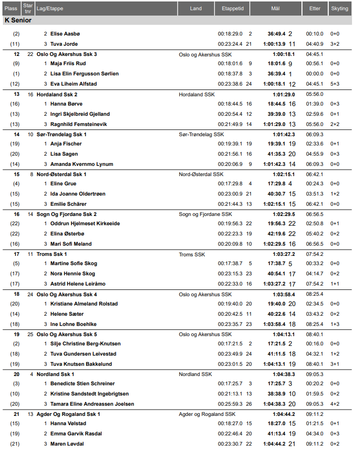 | 13 | Agder og Rogaland SSK 1 | Hanna Volstad – Emma Garvik Rødal – Maren Løvdal | Agder og Rogaland |