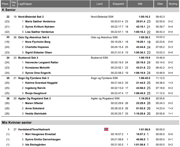 | 19 | Nord-Østerdal SSK 2 | Maria Sæther Verdenius – Synne Kvitum Nytrøen – Lisa Sæther Verdenius | Nord-Østerdal |