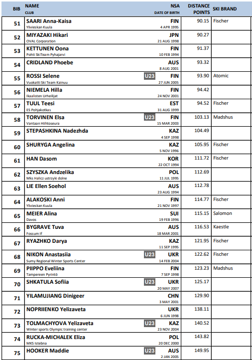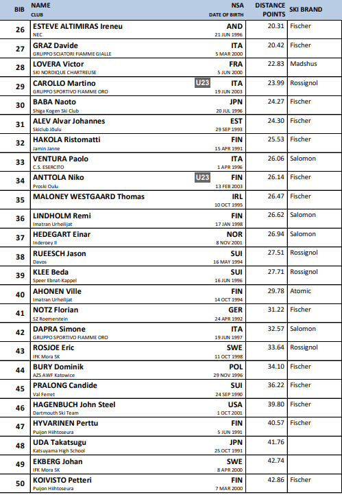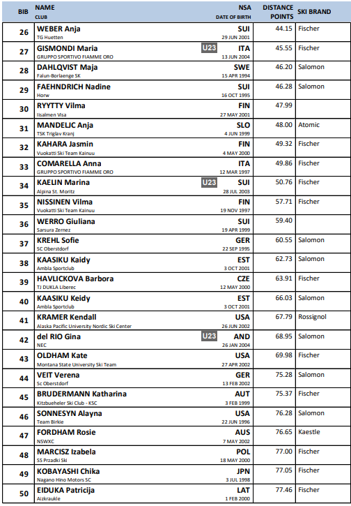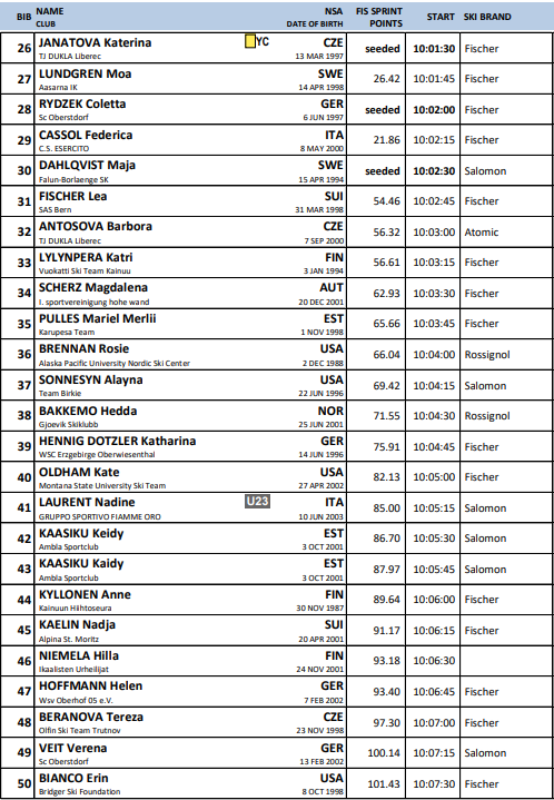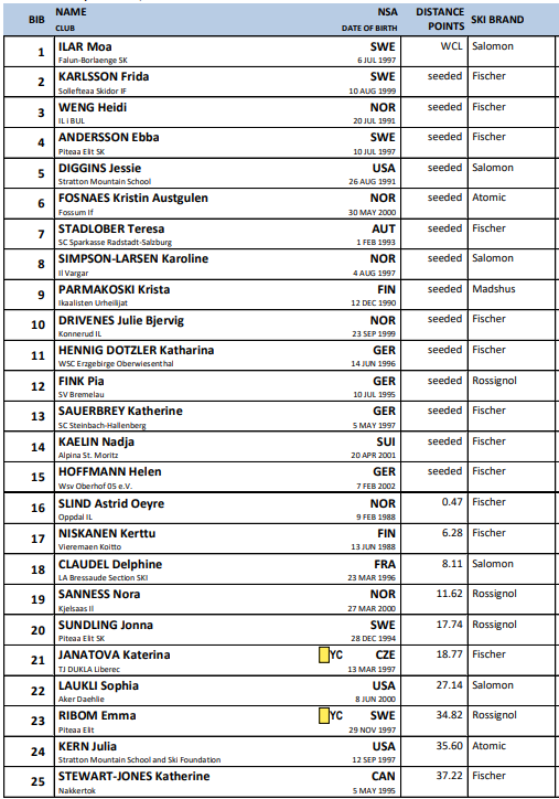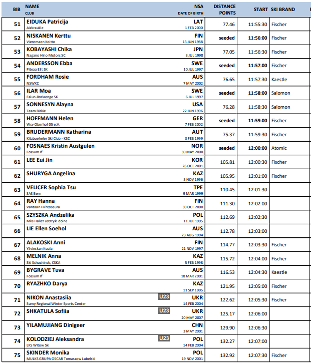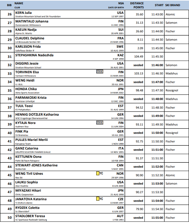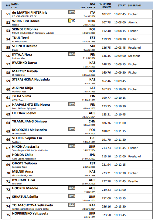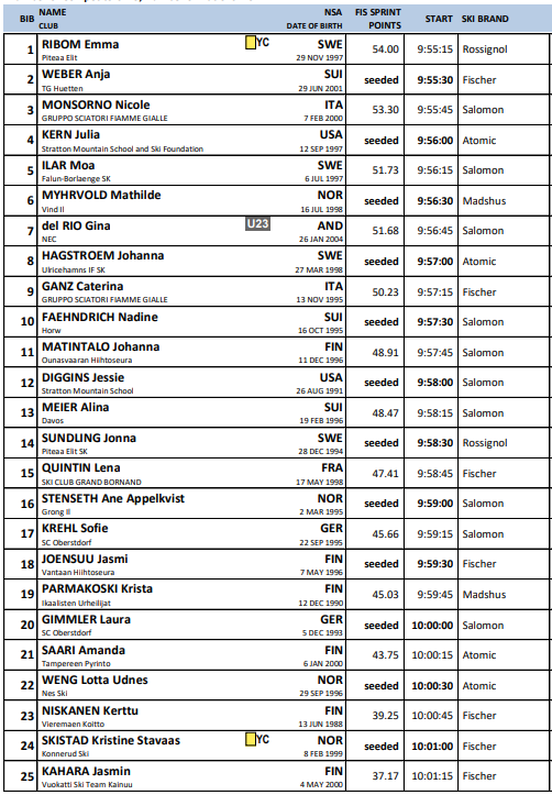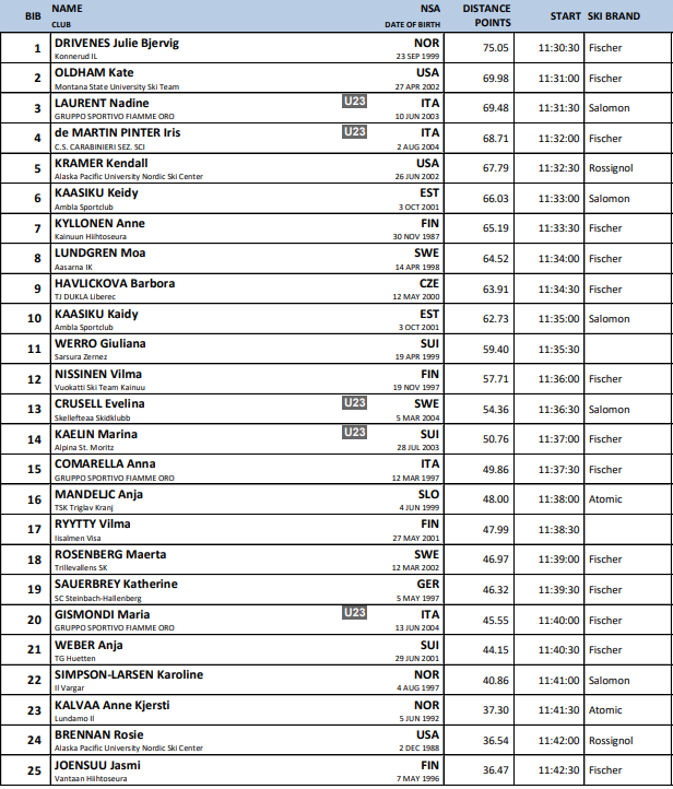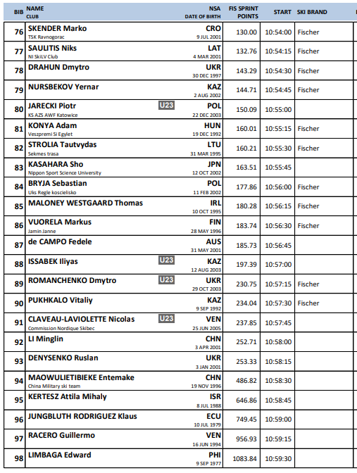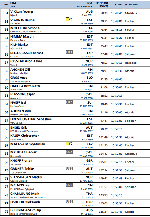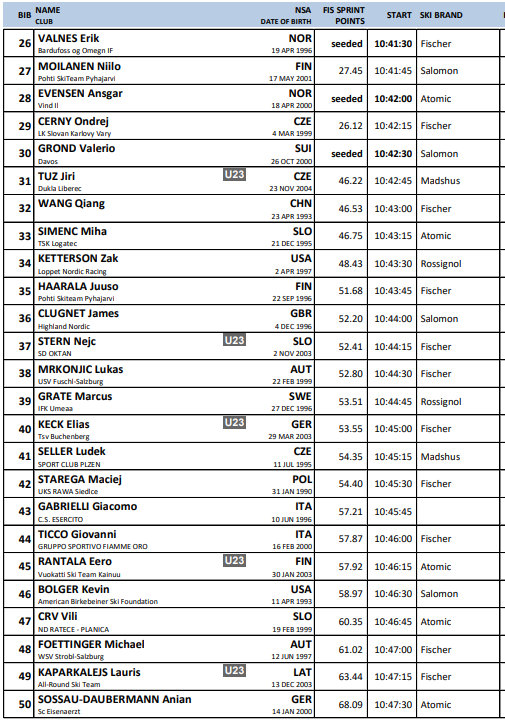 Startlister fra alle renn under Verdenscup langrenn Ruka som arrangeres 28.-30.. november 2025.
