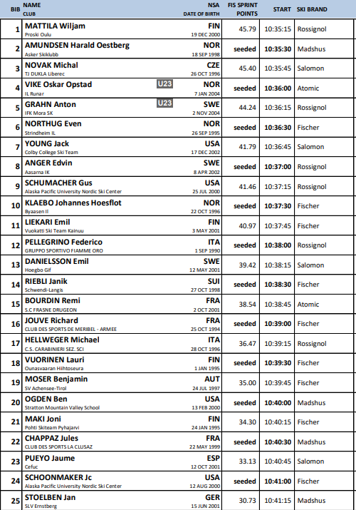 Startlister Verdenscup langrenn Ruka 2025