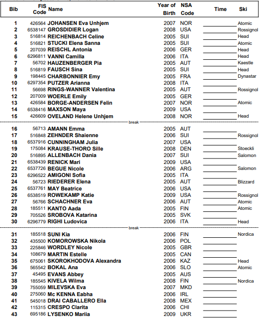 Alle resultater Junior VM alpint Narvik 2026