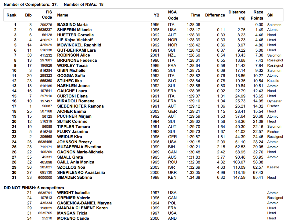 25 30 Ilka Stuhec Slovenia Slovenia 1.28,37 + 2,86