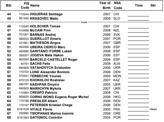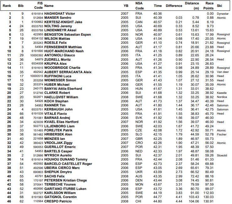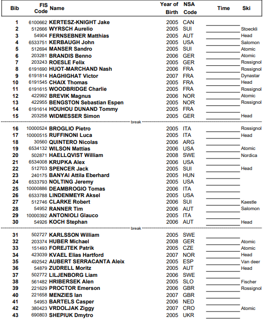 Startlister og resultater fra Super G menn under Junior VM alpint Narvik som arrangeres 9. mars 2026.