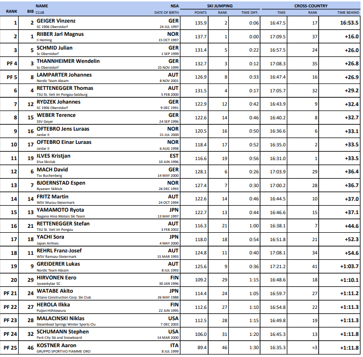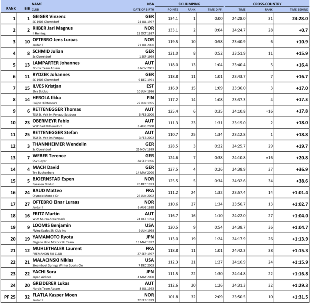 Startlister og resultater verdenscup kombinert Otepää som arrangeres 7. - 9. februar 2025.