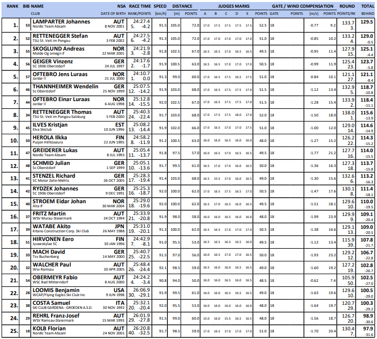 Startlister og resultater Verdenscup kombinert Seefeld som arrangeres 30. januar - 1. februar 2026.