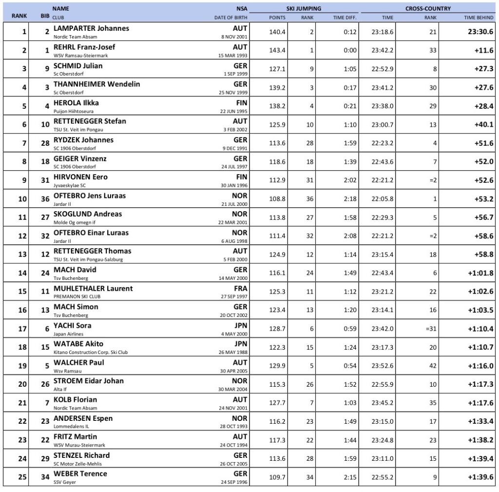 Startlister og resultater Verdenscup kombinert Trondheim menn som arrangeres 6. - 7. desember 2025.