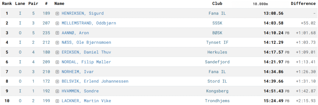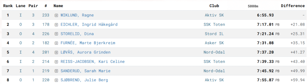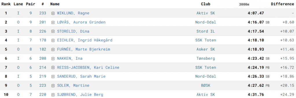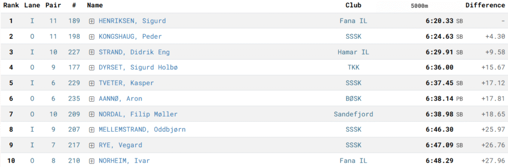 Lørdag: 500 meter (to omganger), 3000/5000 meter