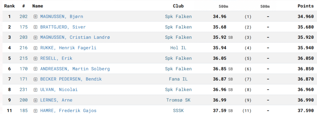 Program, startlister og resultater fra NM skøyter Enkeltdistanser som arrangeres i Stavanger 24. til 26. oktober 2025.
