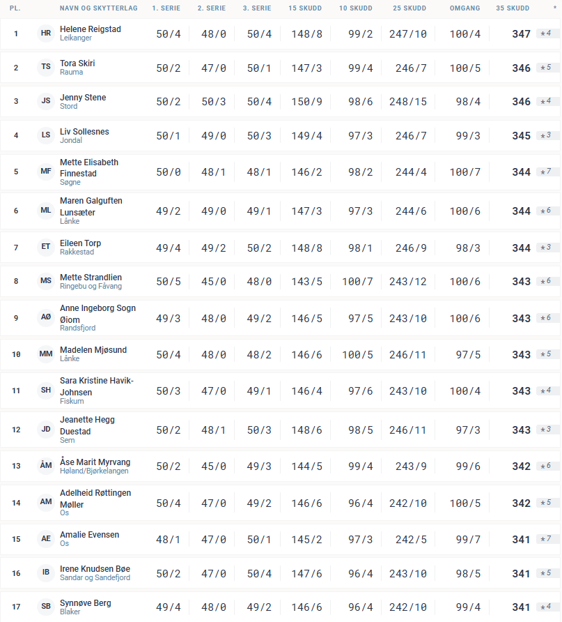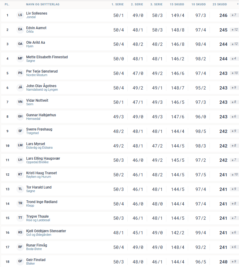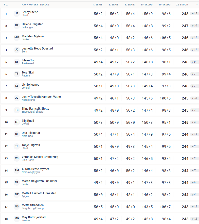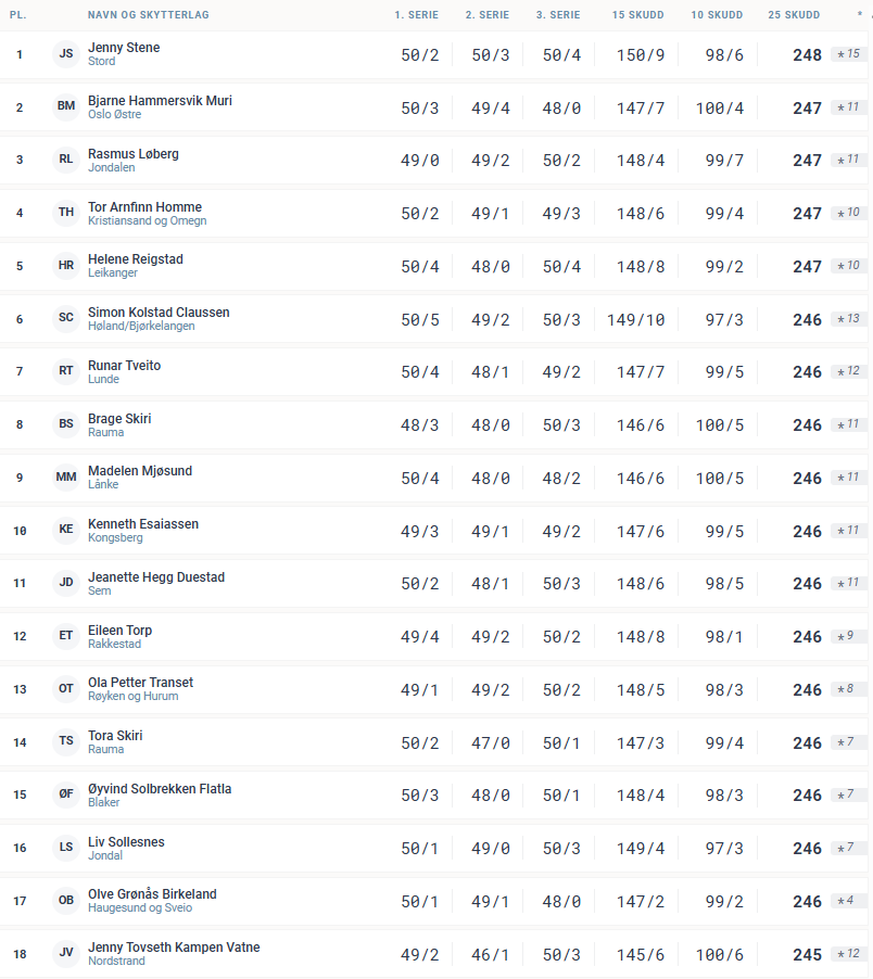 Topp 36 (de 15 beste er kvalifisert til Kongelaget)