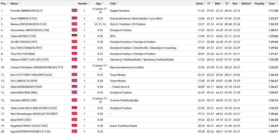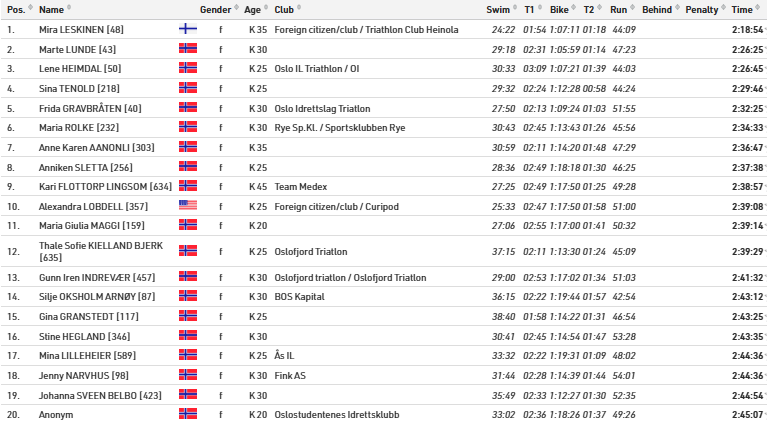 Startlister og resultater fra Oslo Triatlon som arrangeres lørdag 9. august 2025.